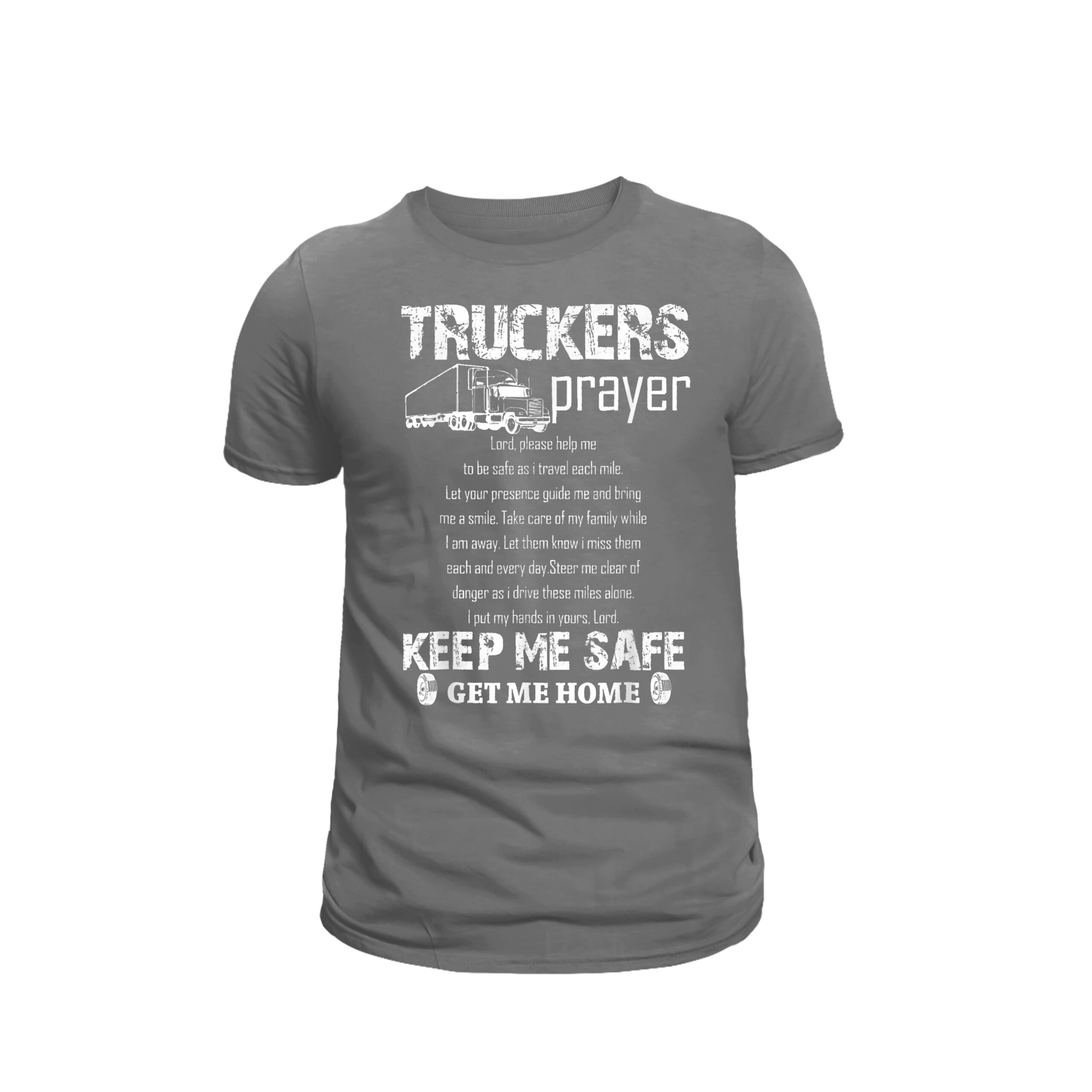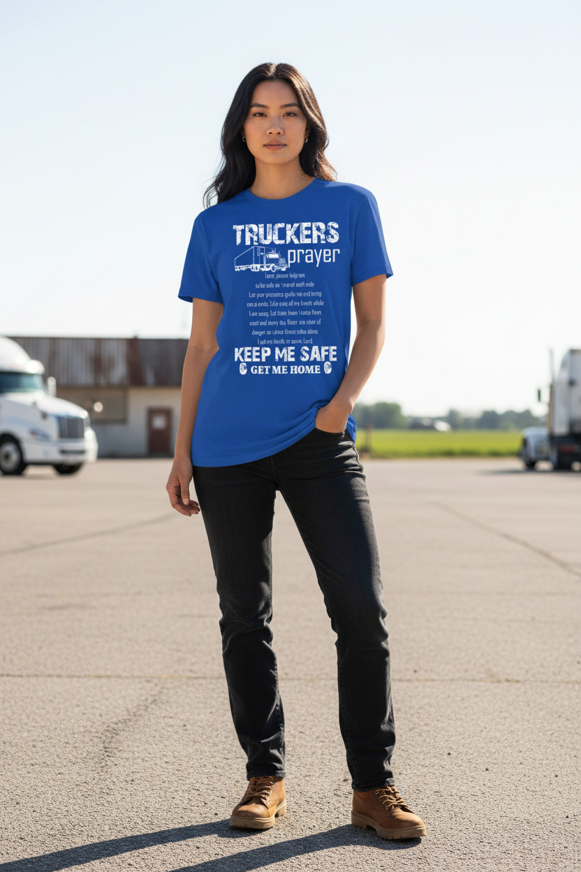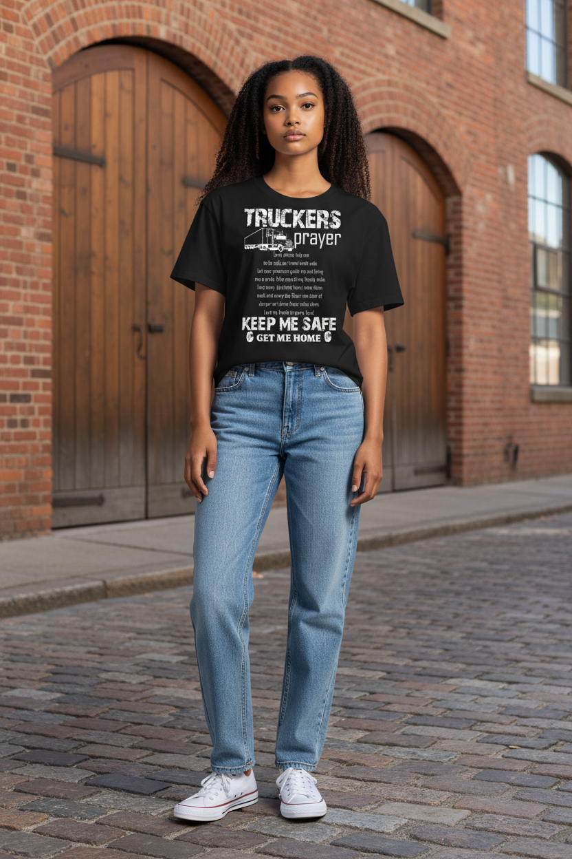 This “Truckers Prayer” graphic tee is more than just apparel it’s a message of protection, purpose, and pride for those who live life mile by mile. Featuring a bold distressed design with a classic semi-truck graphic and a heartfelt prayer, this shirt speaks to the strength, sacrifice, and faith of truckers everywhere. The powerful message, “Keep Me Safe. Get Me Home,” says it all.
